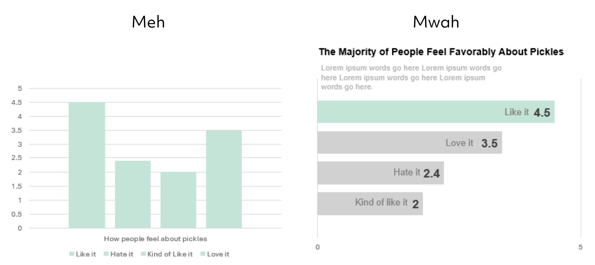 When not to use it: If the audience needs to see proportionality or results across groups.
